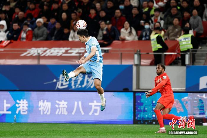 3月7日,两边球员正在角逐中争球。当日,2026赛季中原脚球超等联赛第1轮角逐中,上海海港队(白衣)主场1比2没有敌河北脚球俱乐军队。 中新社记者 殷坐勤 摄